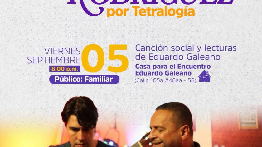 Concierto: Tributo a Silvio Rodríguez septiembre 5 @ 20:00 - 22:000CommentsUn 3 de septiembre, Eduardo Galeano, escritor y periodista, nació en Montevideo-Uruguay en 1940. Publicó textos como Las venas abiertas de latinoamerica, el libro de los abrazos, Patas Arriba: La…Read More
